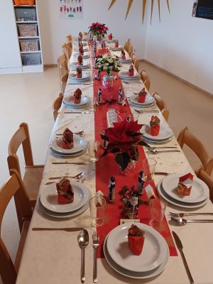 Heute war ein ganz besonderer Tag in der Tagesgruppe Roßdorf. Im Adventskalender der Gruppe war in den letzen Woochen eine Einladung zum Weihnachtsessen versteckt. Für den 22.12 planten die pädagogischen Fachkräfte und die Hauswirtschafterin der Tagesgruppe Roßdorf ein festliches Weihnachtsessen für die Kinder. Die Gruppe sollten den Zauber von Weihnachten gemeinsam erleben und es kamen alle sehr schick und aufgeregt…